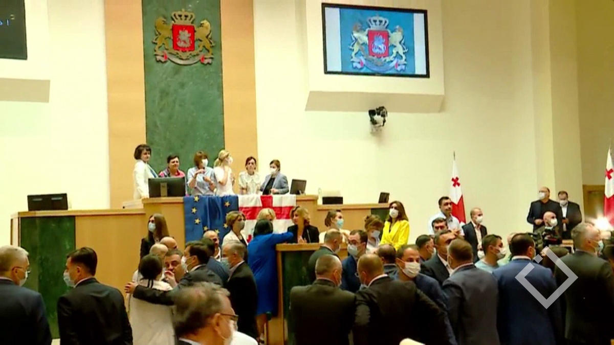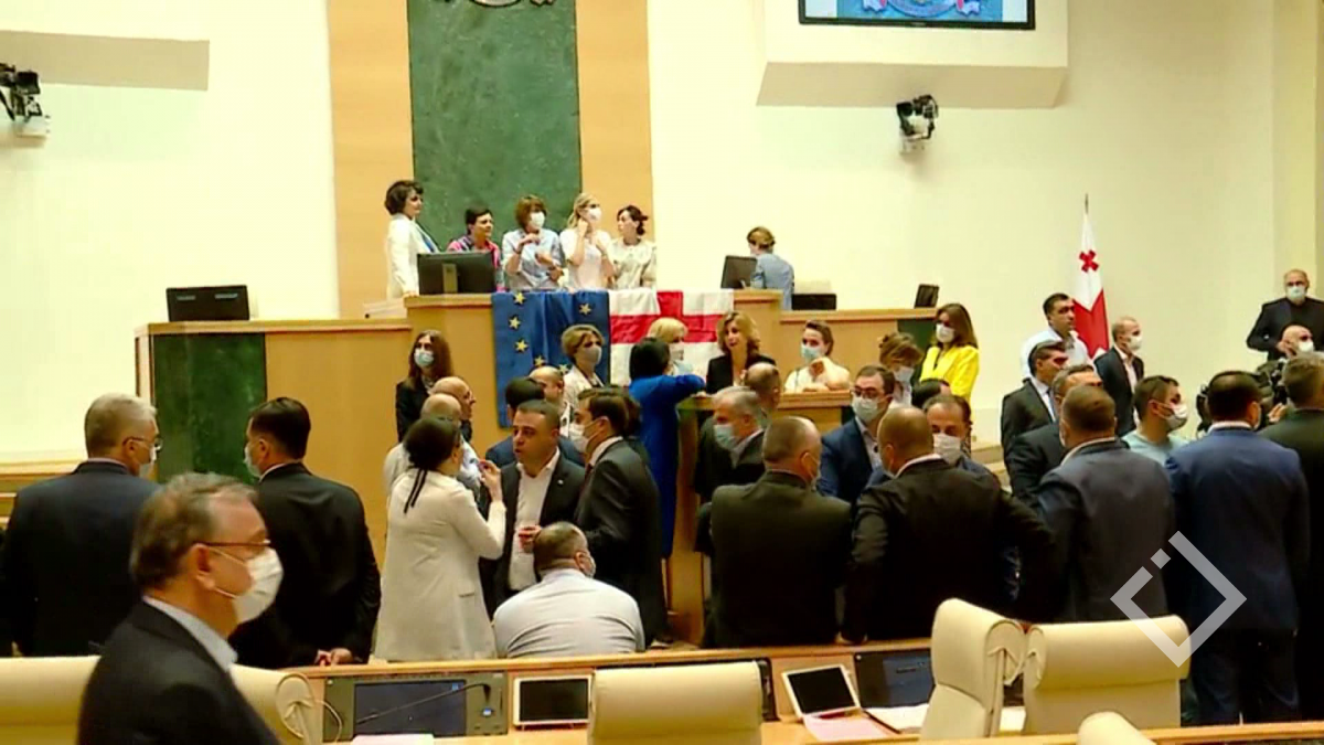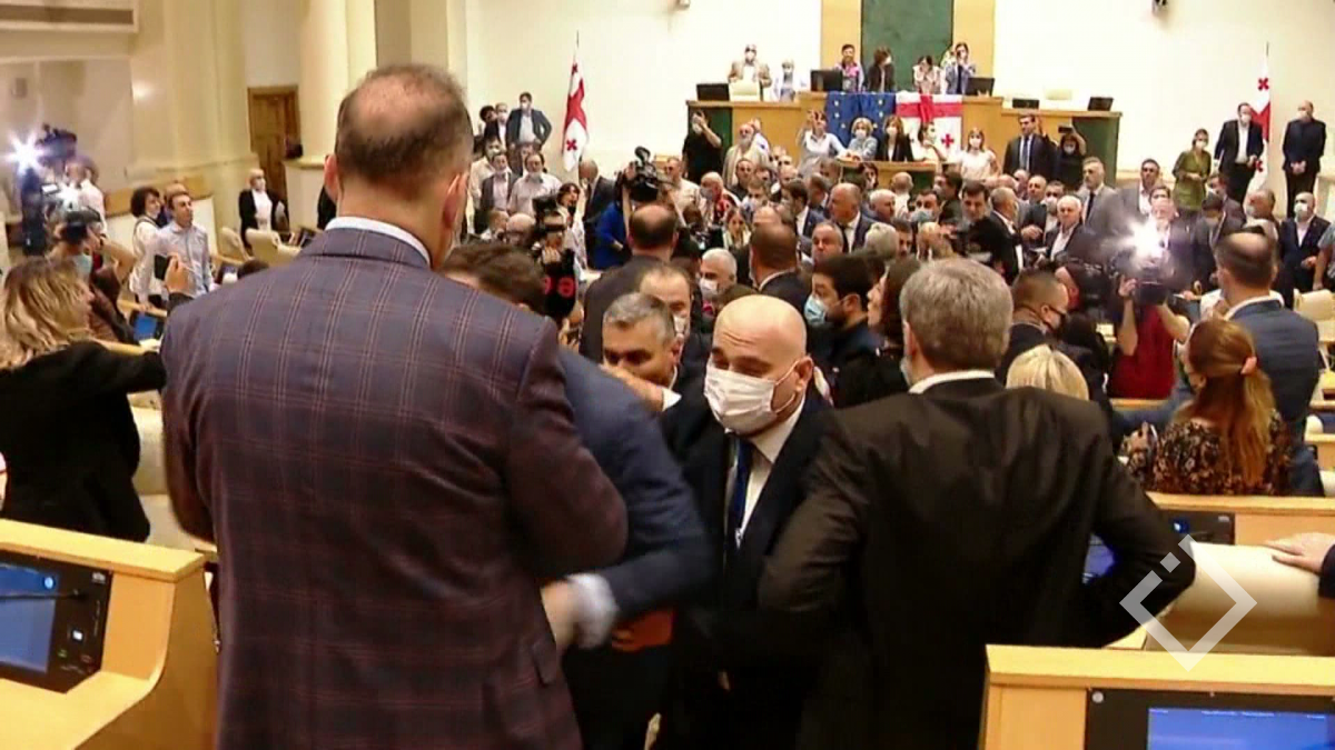 ხმაური, სიტყვიერი და ფიზიკური დაპირისპირება პარლამენტში. ერთმანეთს მმართველი გუნდის დეპუტატი ვიქტორ ჯაფარიძე და გიორგი ვაშაძე ფიზიკურად დაუპირისპირდნენ, ასევე შეხლა-შემოხლა იყო...