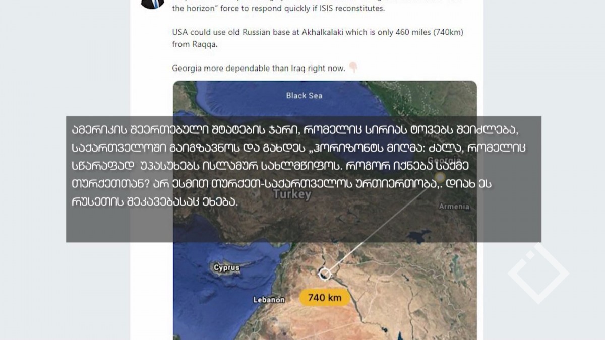 ამერიკის შეერთებული შტატების ჯარი, რომელიც სირიას ტოვებს, შეიძლება, საქართველოში გაიგზავნოს და გახდეს „ჰორიზონტს მიღმა“ ძალა, რომელიც სწრაფად უპასუხებს „ისლამურ სახელმწიფოს“,...