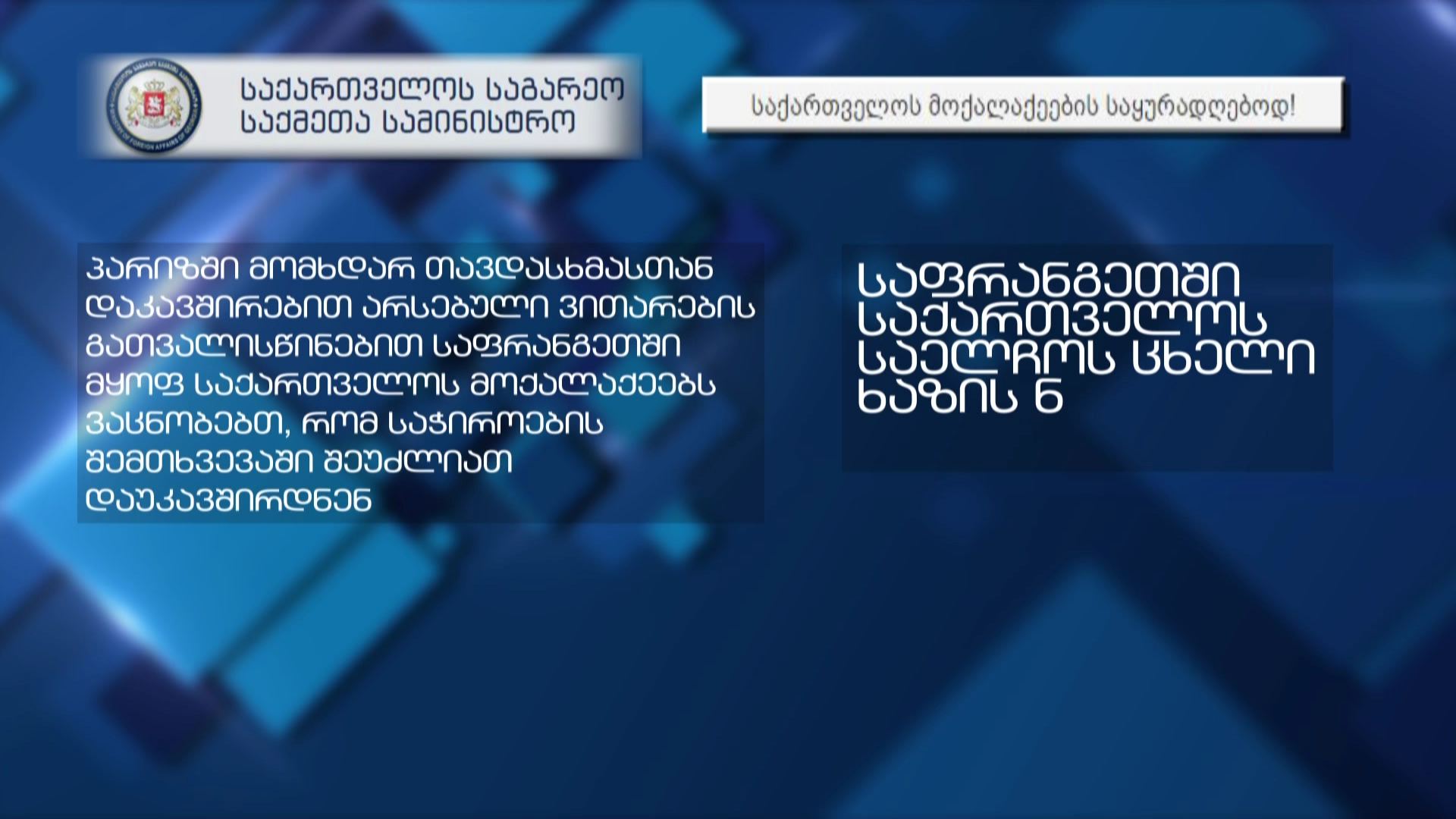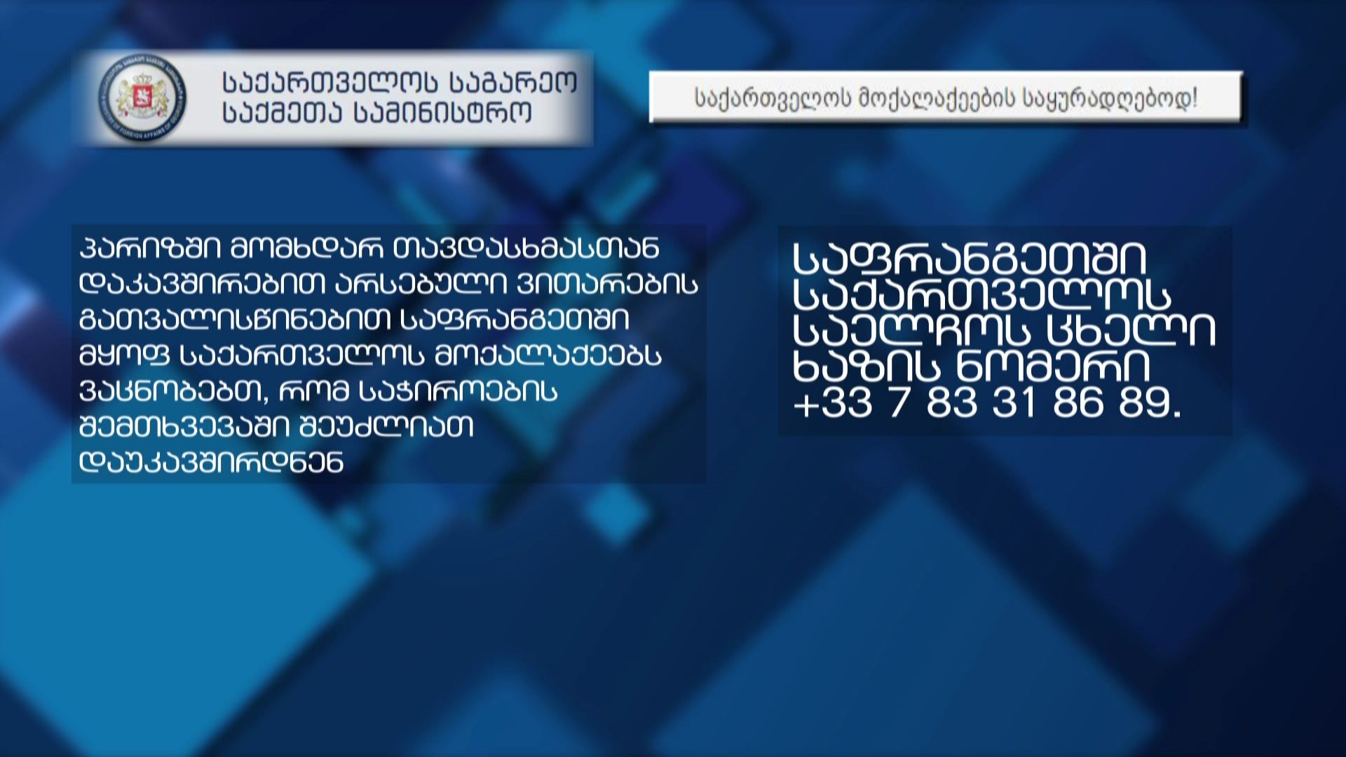 საფრანგეთში მომხდარი თავდასხმის შედეგად ქართველი მოქალაქეები არ დაზარალებულან. აცხადებენ საქართველოს საგარეო საქმეთა სამინისტროში. უწყება პარიზში მყოფი საქართველოს მოქალაქეებისთვის ცხელი ხაზის...