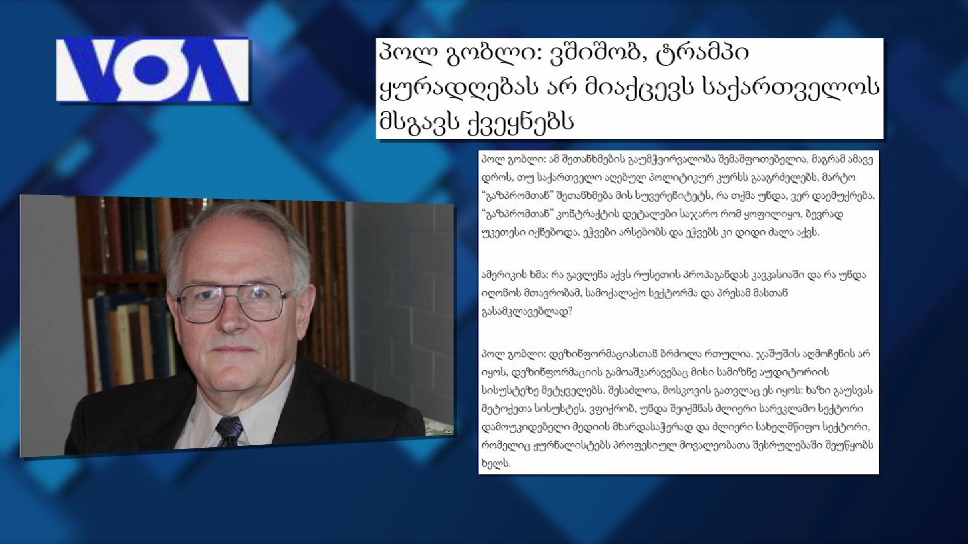 განსხვავებული მოლოდინი აქვს ევრაზიის ქვეყნების დამოუკიდებელ მკვლევარს და ამერიკის მთავრობის ყოფილ მაღალჩინოსანს. პოლ გობლი შიშობს, რომ ტრამპი ყურადღებას არ მიაქცევს...