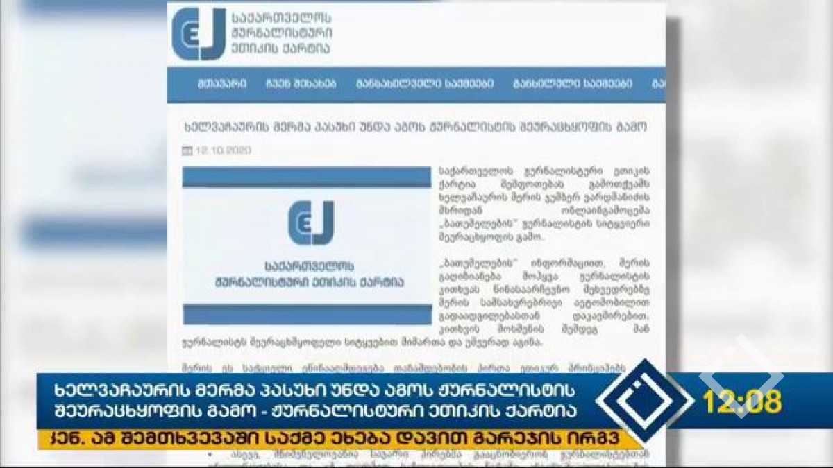 ,,მერის ეს საქციელი ეწინააღმდეგება თანამდებობის პირთა ეთიკურ პრინციპებს და ახალისებს ჟურნალისტების მიმართ აგრესიას“ ნათქვამია საქართველოს ჟურნალისტური ეთიკის ქარტიის მიერ გავრცელებულ...