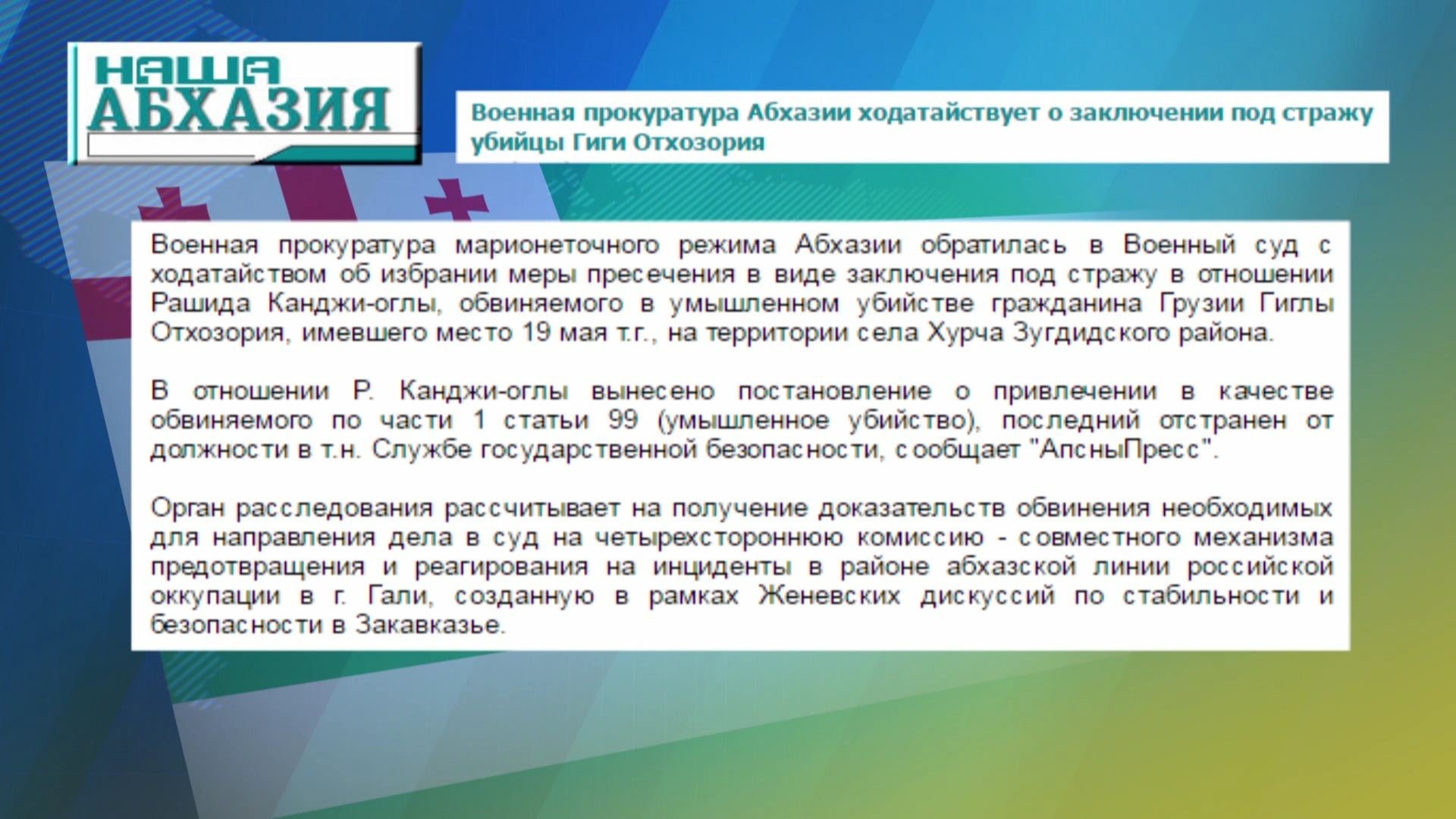 ოკუპირებული აფხაზეთის დე ფაქტო სამხედრო პროკურატურამ ე.წ.სამხედრო სასამართლოს გიგა ოთხოზორიას მკვლელობაში ბრალდებულის, რაშიდ კანჯი-ოღლის დაპატიმრების შუამდგომლობით მიმართა. არსებული ინფორმაციით, ე.წ....