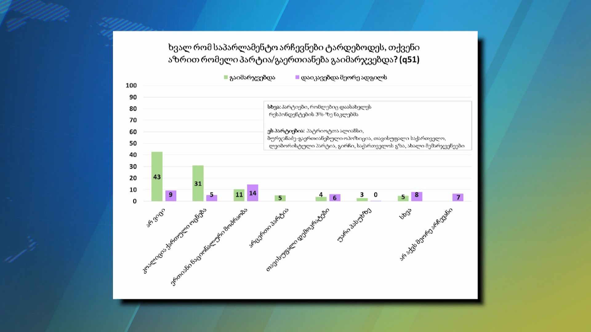 მანამდე დავუბრუნდეთ ენ-დი-აის კვლევას. მმართველი გუნდის უნდობლობა შედეგებს, რომლის თანახმადაც, გამოკითხულთა 15 პროცენტი დაუჭერდა მხარს "ქართულ ოცნებას" ხვალ რომ საპარლამენტო...
