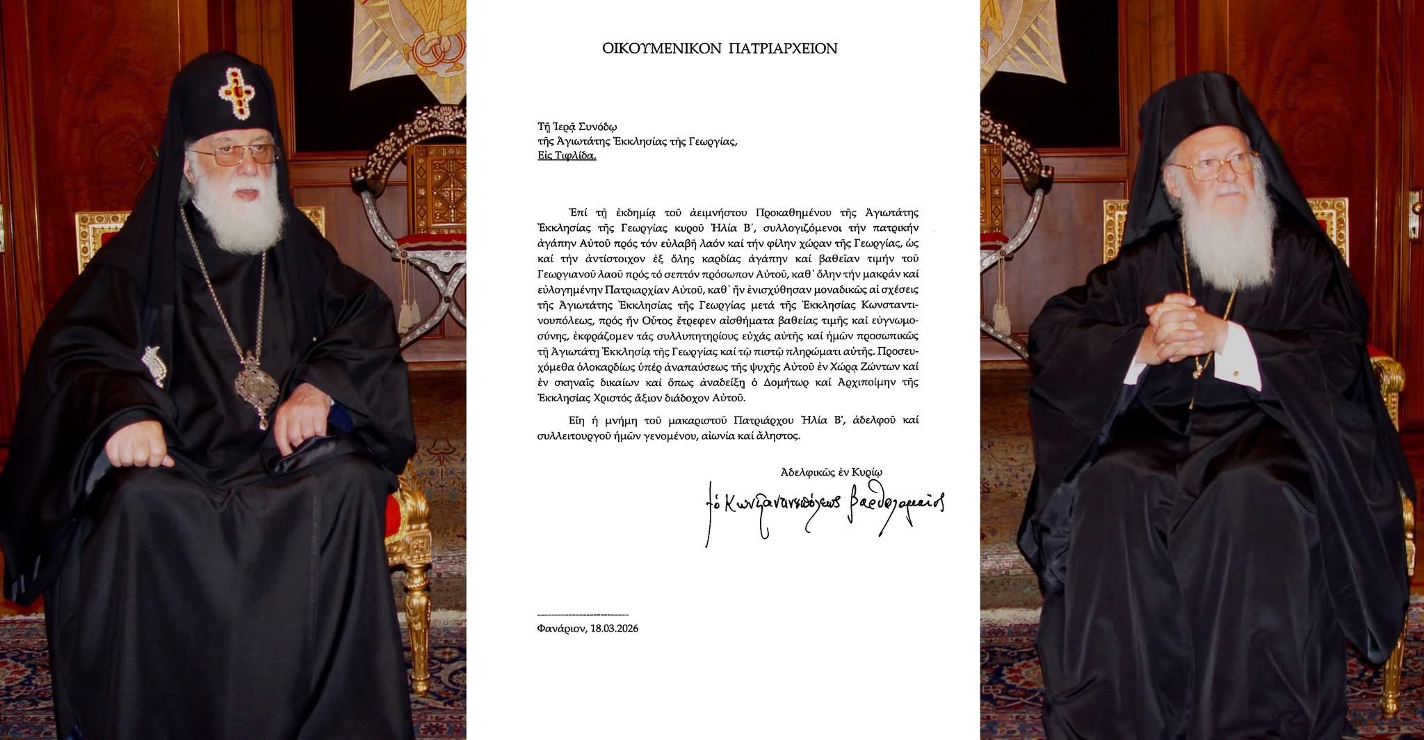 ჩვენი საპატრიარქო სულიერი თანაგრძნობით ვუერთდებით საქართველოს ეკლესიის სამოციქულო მართლმადიდებლურ სარწმუნოებას. ვთხოვთ თქვენს უწმინდესობას, წმინდა სინოდის ღირსეულ წევრებს და საქართველოს ეკლესიის ღვთისმოსავ ერს, მიიღონ ჩვენი პატრიარქალური ლოცვები წმინდა ქალაქ იერუსალიმში, მარტის თვეში“, - აღნიშნულია წერილში