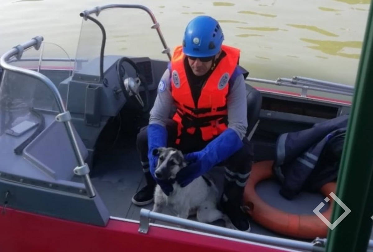 მაშველებმა ოთხფეხა მეგობარი ნავის საშუალებით უსაფრთხო ადგილას უვნებლად გამოიყვანეს.