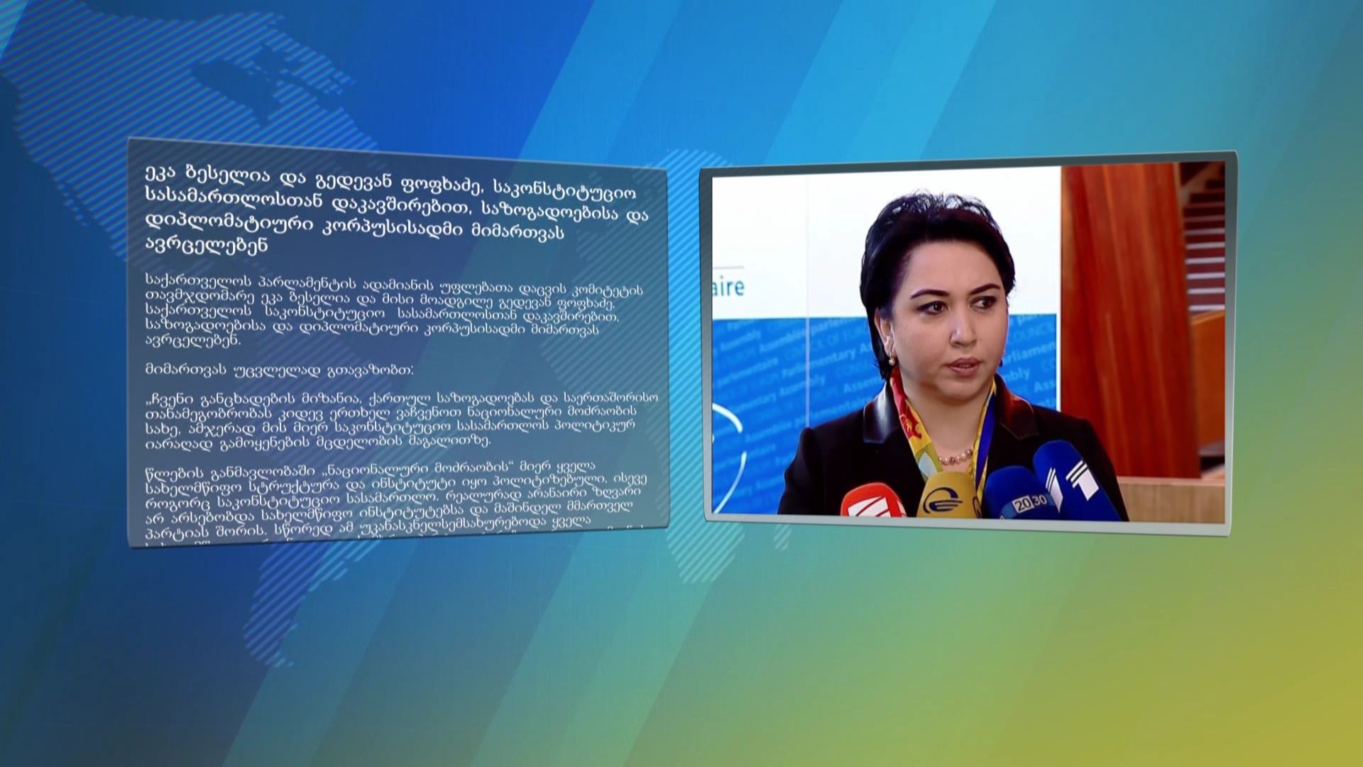 ცოტა ხნის წინ საკონსტიტუციო სასამართლოსთან დაკავშირებით დიპლომატიური კორპუსის და საზოგადოებისადმი მიმართვა გაავრცელეს ეკა ბესელიამ და გედევან ფოფხაძემ. პარლამენტის ადამიანის უფლებათა...