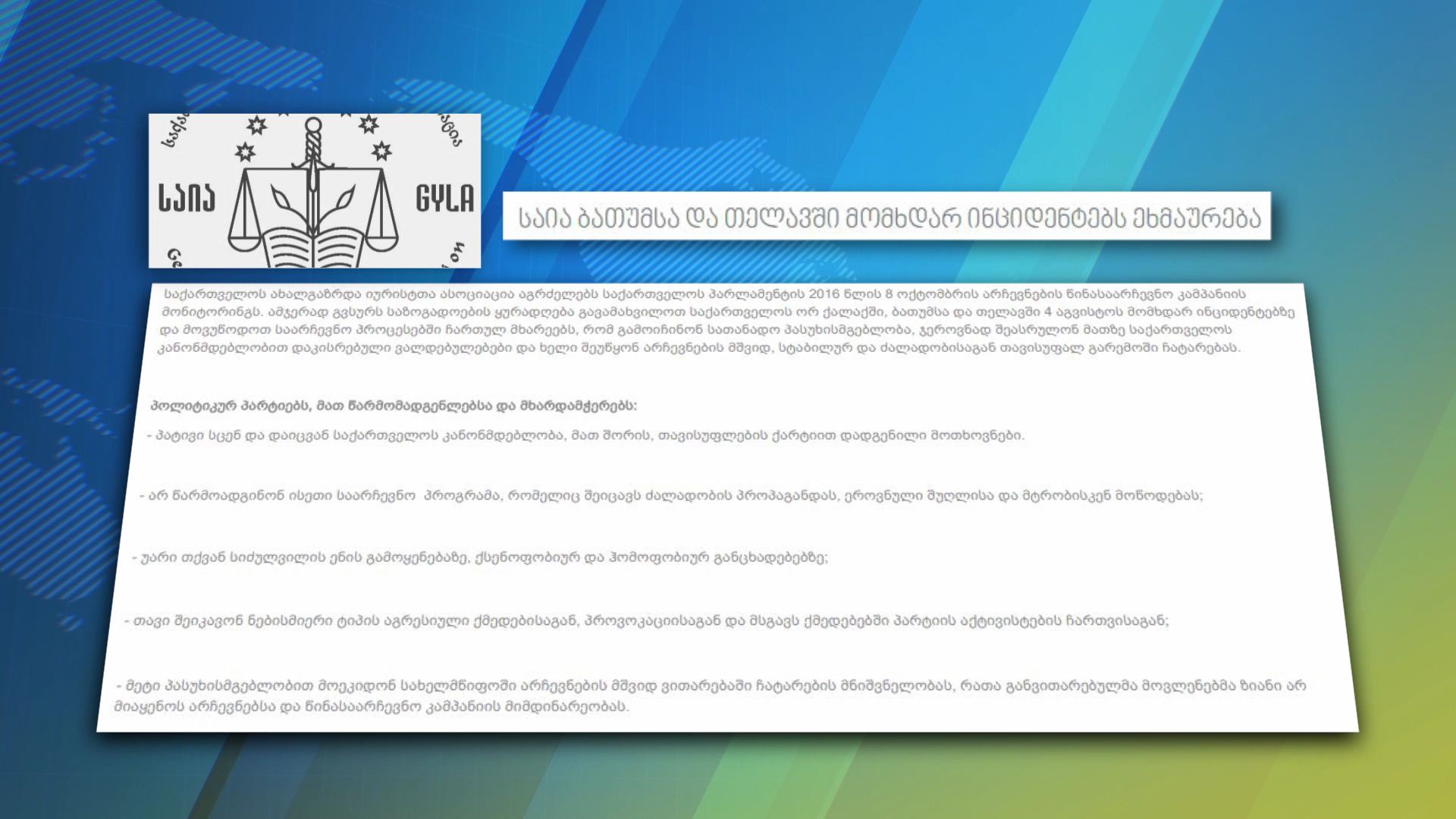წინასაარჩევნო კამპანიის მონიტორინგის ფარგლებში, გასულ დღეებში, ბათუმსა და თელავში მომხდარ ინციდენტებს "ახალგაზრდა იურისტთა ასოციაცია” განცხადებით ეხმაურება. ორგანიზაცია საარჩევნო პროცესებში ჩართულ...