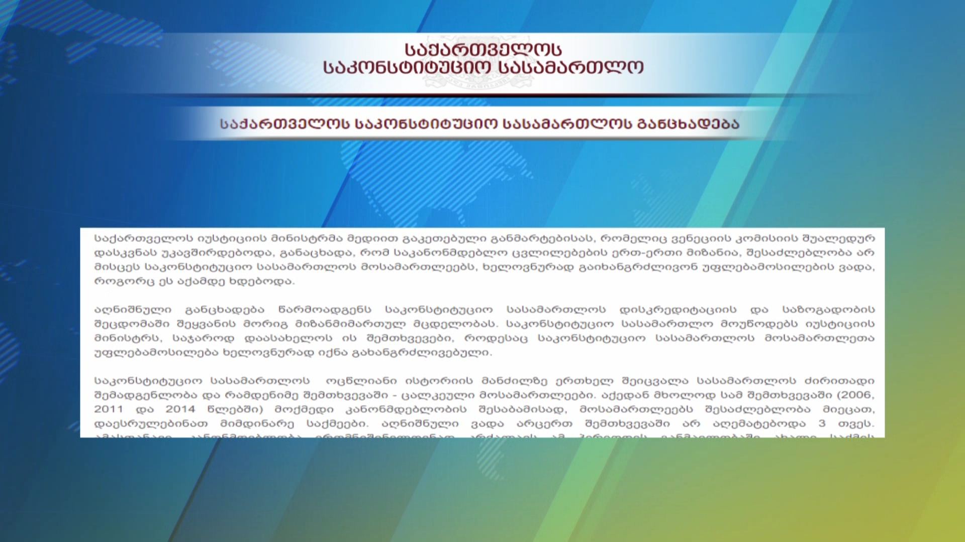 საკონსტიტუციო სასამართლო იუსტიციის მინისტრს, იმ შემთხვევების დასახელებისკენ მოუწოდებს, როცა მოსამართლეთა უფლებამოსილება ხელოვნურად გახანგრძლივდა. ამის შესახებ საკონსტიტუციო სასამართლოს განცხადებაშია ნათქვამი, რომლითაც...