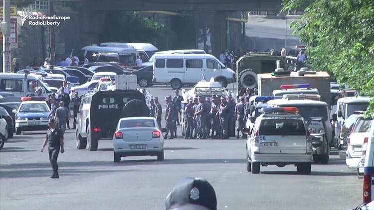 ერევანში პოლიციის განყოფილებაზე თავდასხმის დროს დაშავებულთა მდგომარეობა მძიმეა. პოლიციის სამმართველოსთან მისასვლელებზე გამკაცრებული კონტროლია დაწესებული. გადაკეტილია საავტომობილო გზები. მძევლების გასათავისუფლებლად შეიარაღებულ...