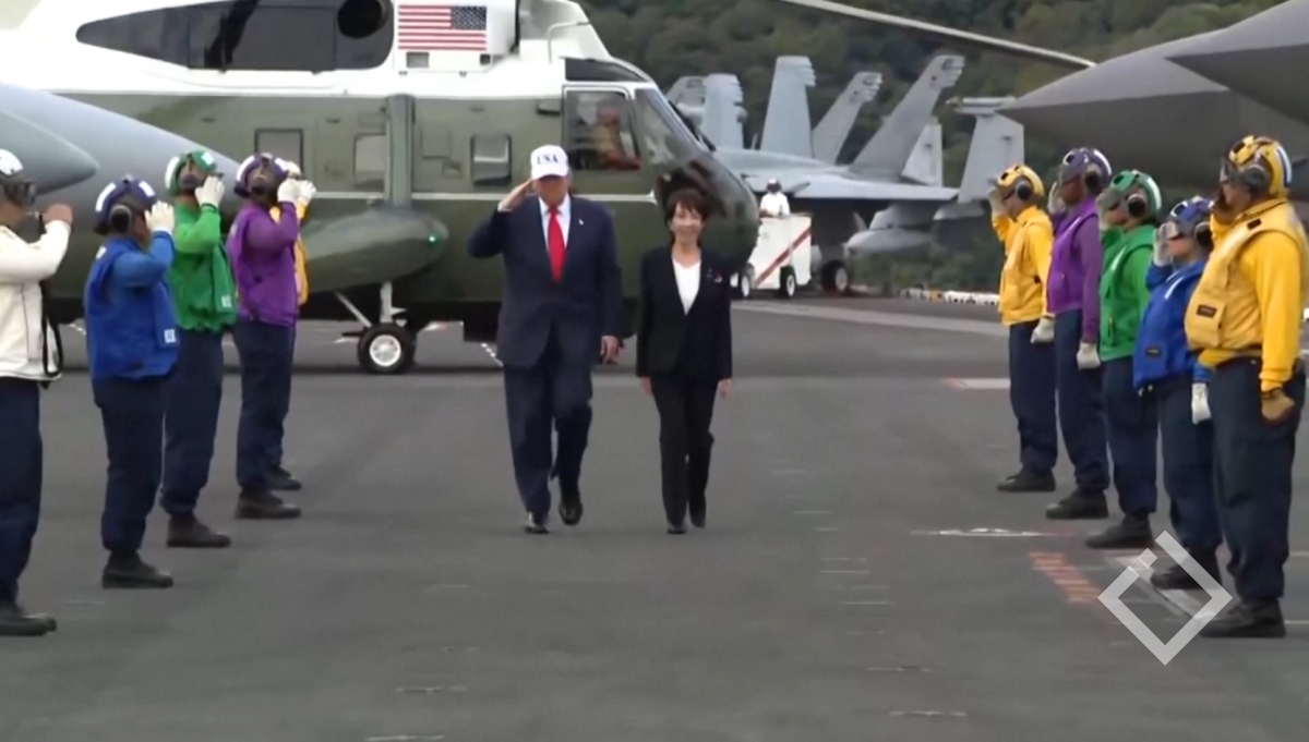 ტაკაიჩი და ტრამპი საზღვაო ბაზაზე ვერტმფრენით ჩავიდნენ მას შემდეგ, რაც დღის დასაწყისში ხელი მოაწერეს ვაჭრობისა და იშვიათი მინერალების შესახებ შეთანხმებებს. ბაზაზე განთავსებულია ავიამზიდი ჯორჯ ვაშინგტონი, რომელიც აშშ-ის სამხედრო ძალების ძლიერი წარმომადგენლობის ნაწილია რეგიონში.