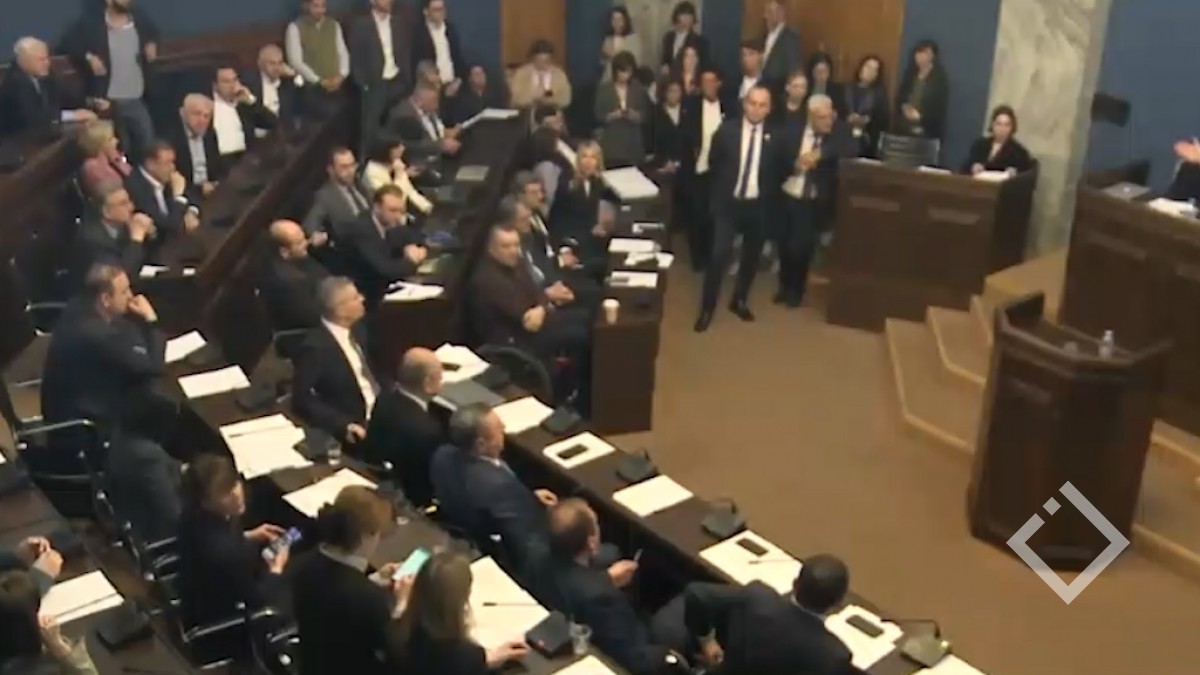 პარლამენტში „უცხოური გავლენის გამჭვირვალობის შესახებ“ კანონპროექტის განხილვა კამათის ფონზე მიმდინარეობს.