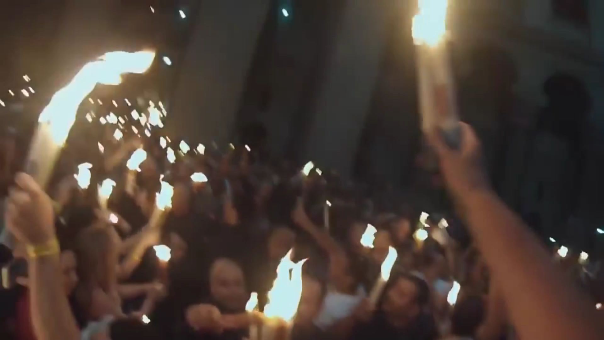 ცეცხლი რომელსაც საქართველოში ელოდებიან, აღდგომის ტაძარში, კუვუკლიიდან პირველმა იერუსალიმის პატრიარქმა გამოიტანა. შემდეგ კი ცეცხლი ტაძარში შეკრებილმა მორწმუნეებმა ერთმანეთს გადააწოდეს....