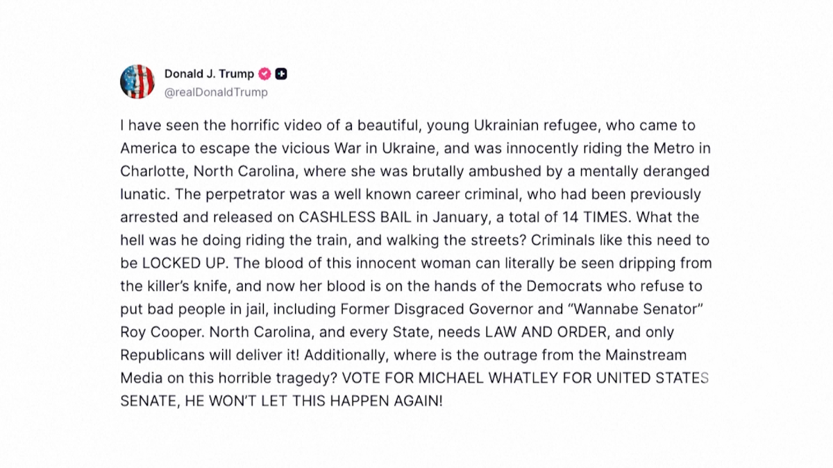 სოციალურ მედიაში ამერიკის ჩრდილოეთ კაროლინის შტატში 22 აგვისტოს მომხდარი მკვლელობის ამსახველი ვიდეო გავრცელდა, რომელსაც დონალდ ტრამპი გამოეხმაურა. გამოქვეყნებულ ვიდეოში ჩანს...