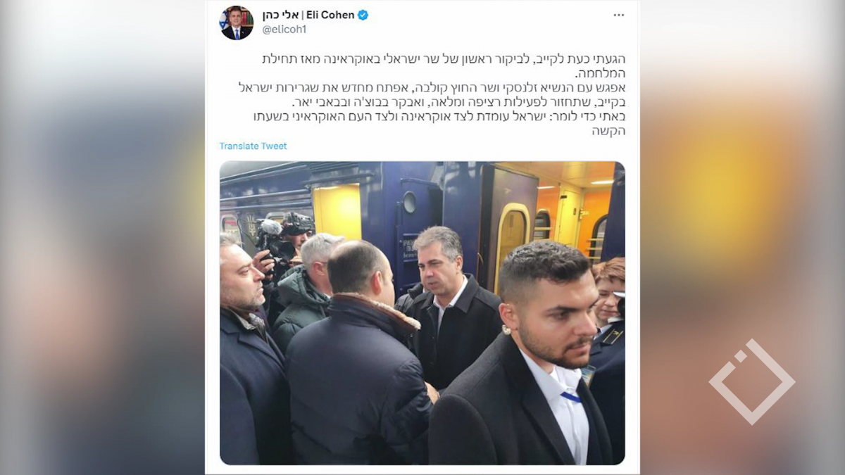 უკრაინაში რუსეთის სამხედრო შეჭრის შემდეგ ისრაელის საგარეო საქმეთა მინისტრი კიევში პირველად ჩავიდა. ელი კოენი ტვიტერზე წერს, რომ იგი შეხვდება პრეზიდენტ ზელენსკის და...
