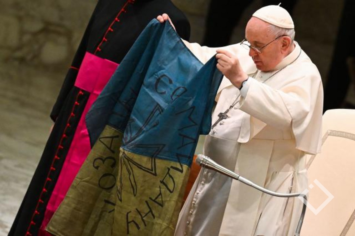 რომის პაპმა ფრანცისკემ უკრაინის ქალაქ ბუჩაში რუსი ოკუპანტების მიერ მშვიდობიანი მოქალაქეების მასობრივი მკვლელობა დაგმო და უკრაინული დროშა გაშალა, რომელიც მას ...