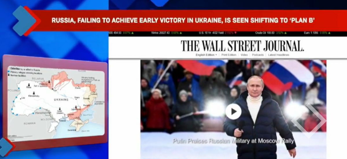 პუტინი უკრაინასთან ომში გეგმა “ბ”-ზე გადადის - ასე ასათაურებს გავლენიანი ამერიკული გამოცემა The Wall Street Journal სტატიას უკრაინა-რუსეთის ომის შესახებ. კიევის...