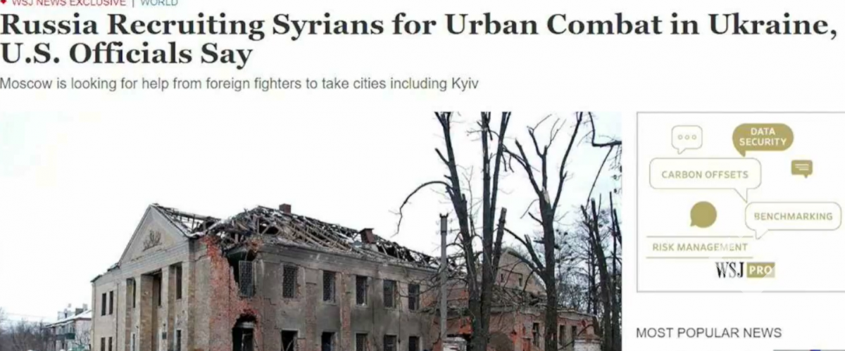 რუსეთი უკრაინაში საბრძოლველად სირიელ ბოევიკებს ქირაობს, რომლებსაც ქალაქში საბრძოლო მოქმედებების გამოცდილება აქვთ. 4 ამერიკელ ჩინოვნიკზე დაყრდნობით, ამის შესახებ უოლ სთრით...