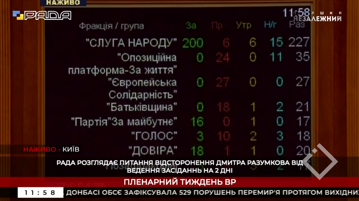 უკრაინის უმაღლესი რადას თავმჯდომარე დიმიტრი რაზუმკოვი აცხადებს, რომ მას ორი დღით პარლამენტის პლენარული სხდომის ჩატარების უფლებამოსილება უკანონოდ შეუწყვიტეს. რაზუმკოვისთვის ამ უფლებამოსილების...