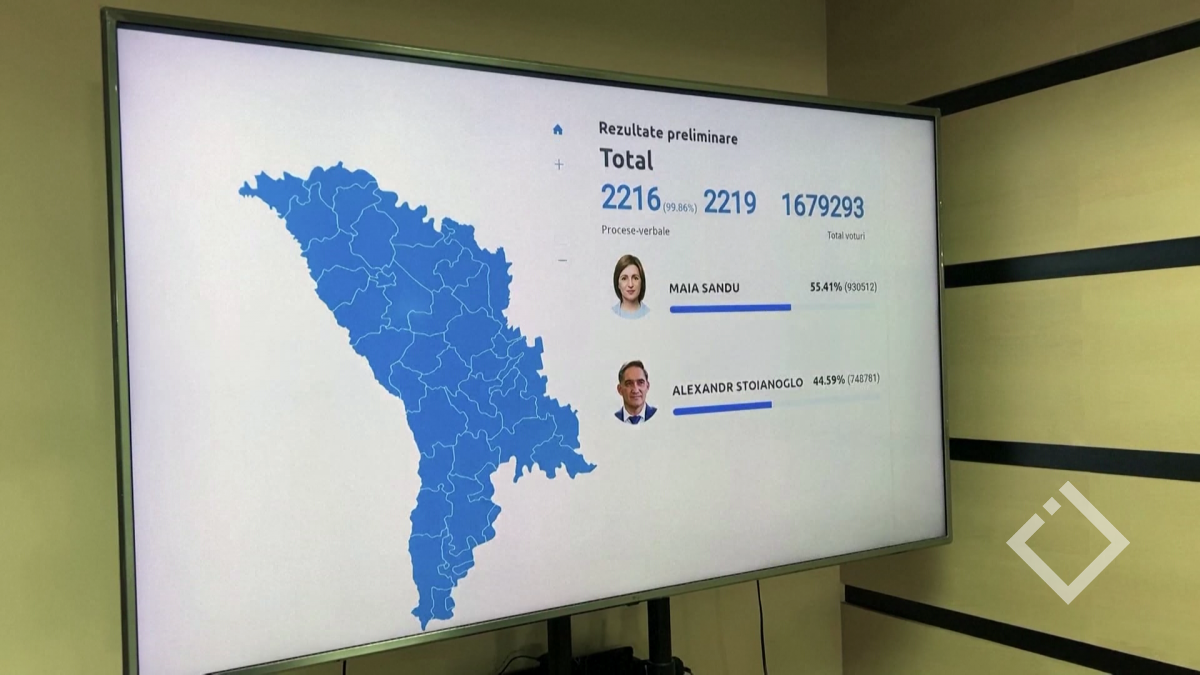 მოლდოვის ცენტრალურმა საარჩევნო კომისიამ საპრეზიდენტო არჩევნების მეორე ტურის თითქმის საბოლოო შედეგები გამოაცხადა, რომლის თანახმად, ამომრჩეველთა 55%-მა მოქმედი პრეზიდენტი მაია სანდუ...