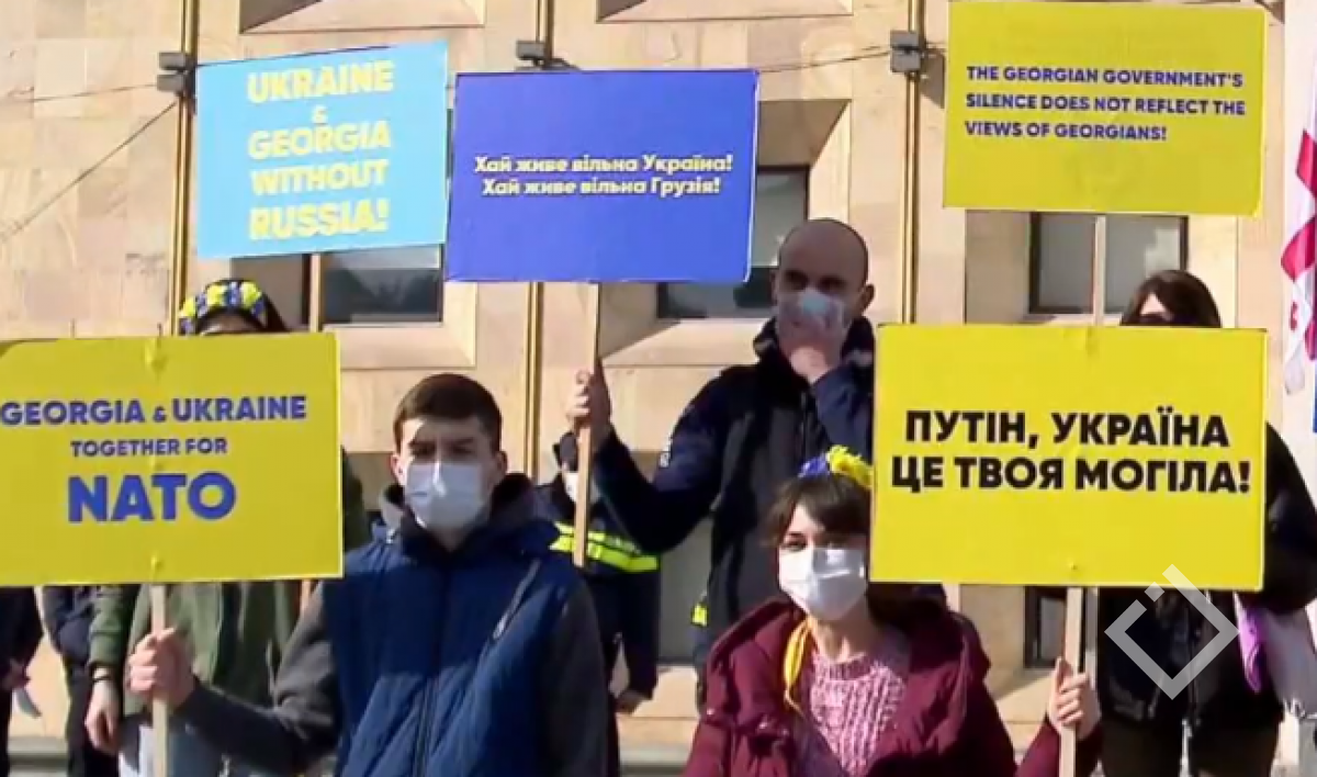 ამ წუთებში თბილისში მთავრობის ადმინისტრაციასთან უკრაინის მხარდამჭერი აქცია მიმდინარეობს. სამოქალაქო აქტივისტები მმართველი პარტიისგან უკრაინის მხარდასაჭერად მკაფიო განცხადებების გაკეთებას ითხოვენ.
