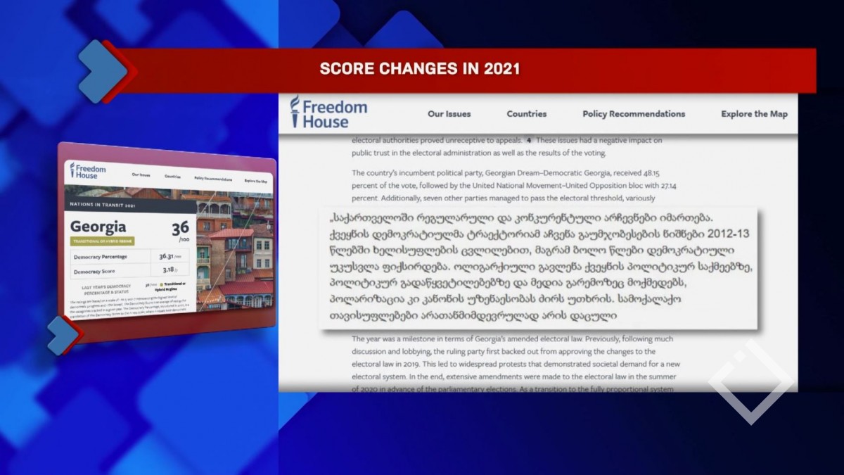 საქართველოში დემოკრატიის მაჩვენებლები გაუარესდა.-ამის შესახებ საერთაშორისო ორგანიზაციის წლიურ ანგარიშში წერია. Freedom Hause -ის ანგარიშში საუბარია თავისუფლების ინდექსზეც. 2021 წელს საქართველოში...