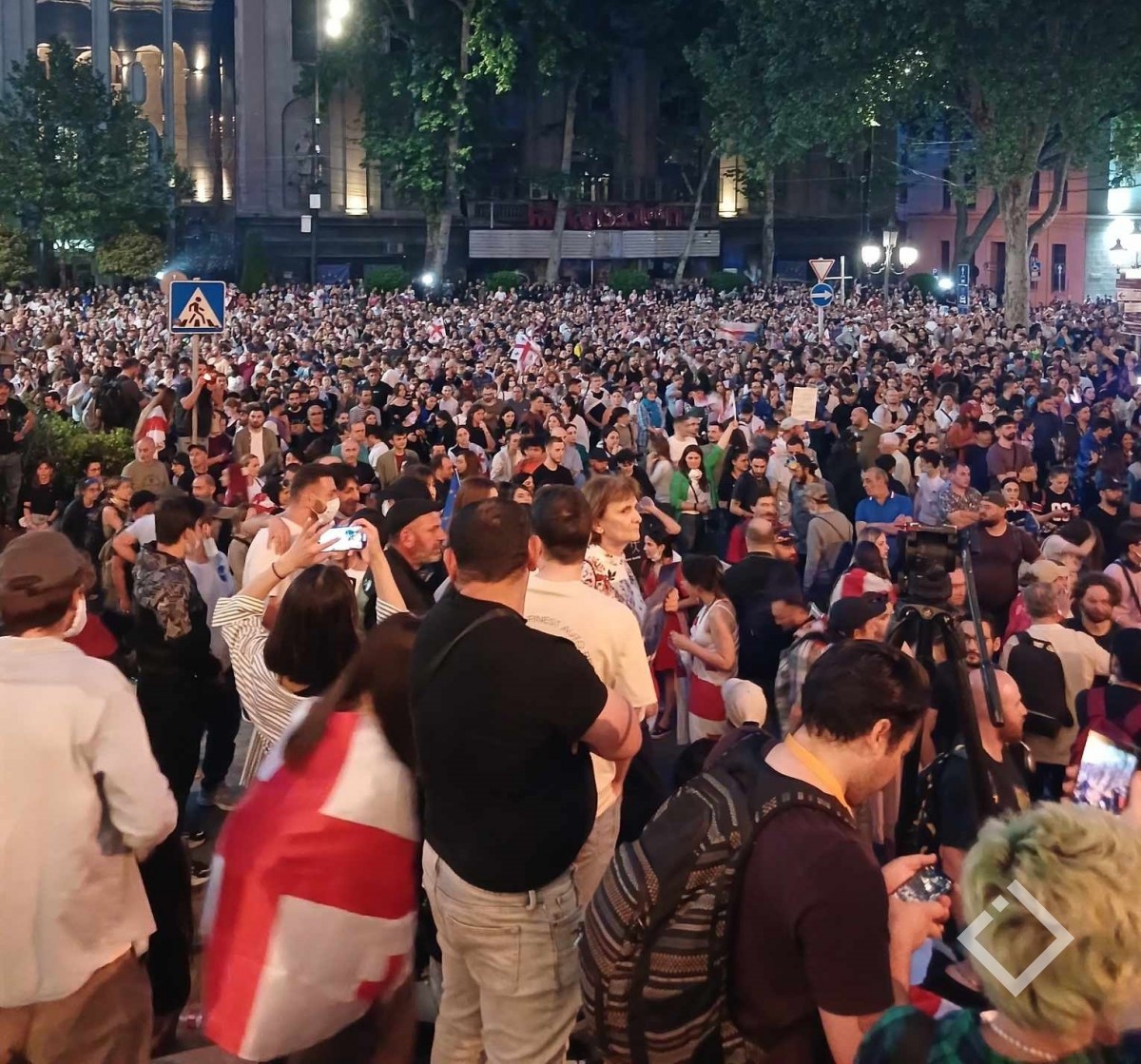 საპროტესტო აქცია მიმდინარეობს რუსთაველის გამზირზე, აქციის მონაწილეები “უცხოური გავლენის გამჭვირვალობის შესახებ“ კანონპროექტს აპროტესტებენ.