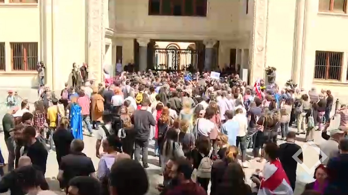 აქცია მიმდინარეობს თბილისში რუსთაველზე საკანონმდებლო ორგანოსთან