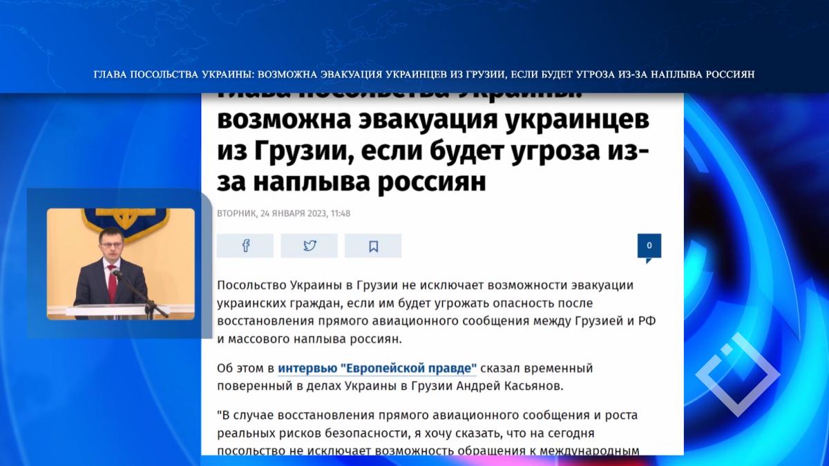 საქართველოში უკრაინის საელჩო არ გამორიცხავს უკრაინის მოქალაქეების ევაკუაციის შესაძლებლობას, „თუ მათ საფრთხე დაემუქრებათ საქართველოსა და რუსეთის ფედერაციას შორის პირდაპირი საჰაერო...