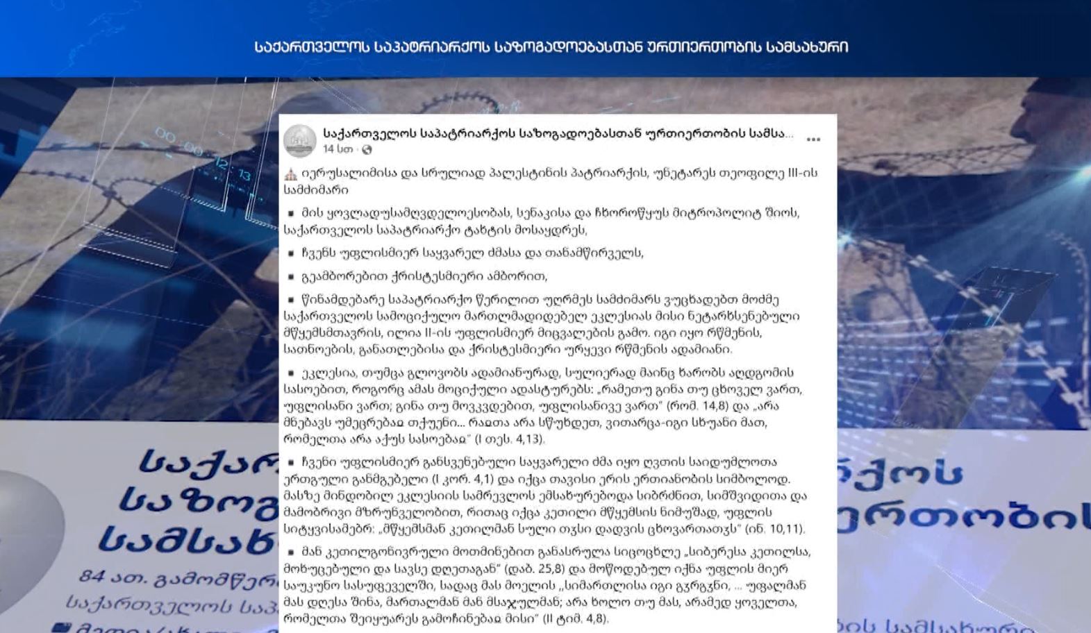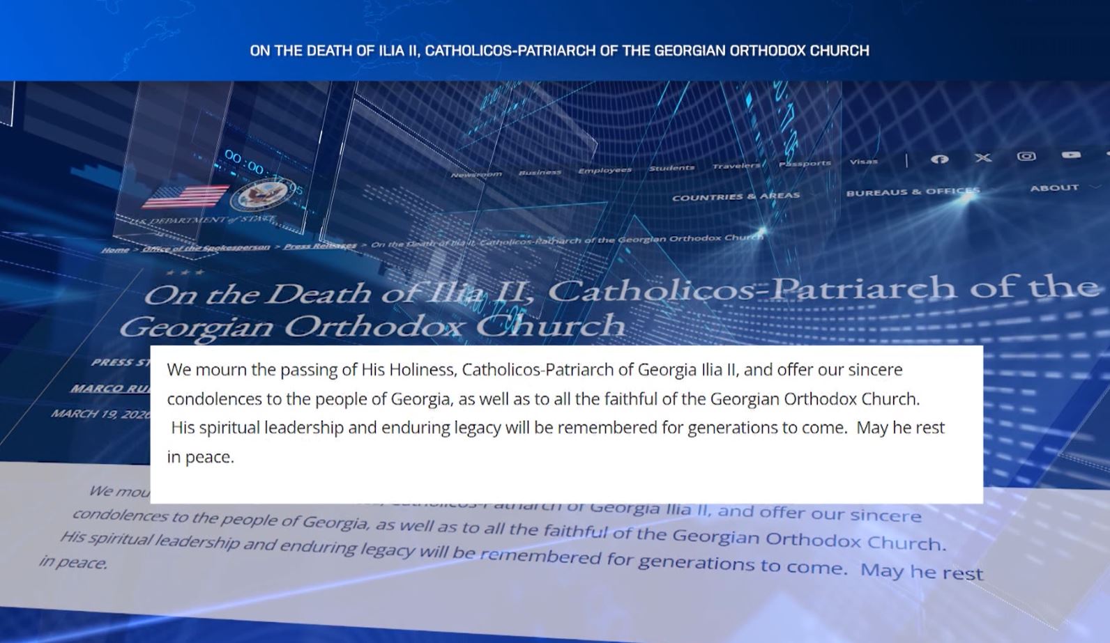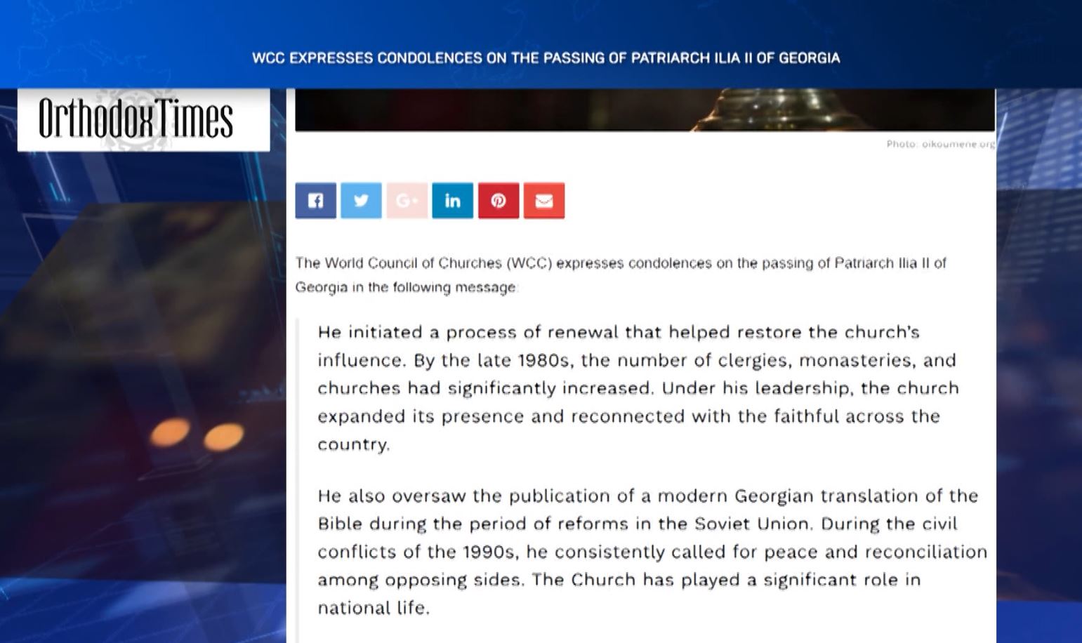 ,,ეკლესიათა მსოფლიო საბჭო საქართველოს კათოლიკოს-პატრიარქის, ილია მეორის გარდაცვალების გამო მწუხარებას გამოთქვას. ჩვენ, მთელ მსოფლიოში ჩვენს მართლმადიდებელ დებსა და ძმებთან ერთად,...