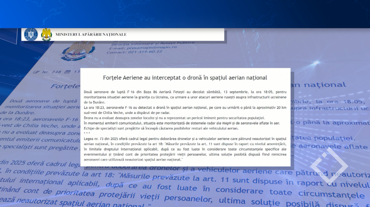 რუმინეთის თავდაცვის სამინისტროში აცხადებენ, რომ უკრაინაში რუსული დრონებით იერიშების დროს 1 უპილოტო საფრენი აპარატი რუმინეთის საჰაერო სივრცეში შევიდა. უწყების ინფორმაციით,...