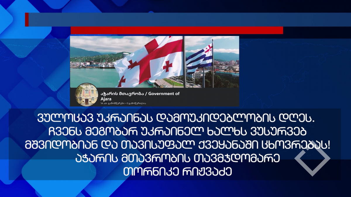 დღეს უკრაინა დამოუკიდებლობის დღეს აღნიშნავს, ქვეყანამ დამოუკიდებლობა 1991 წლის 24 აგვისტოს გამოაცხადა. საქართველოს პრეზიდენტმა და პრემიერ-მინისტრმა უკრაინას დამოუკიდებლობის დღე მიულოცეს....