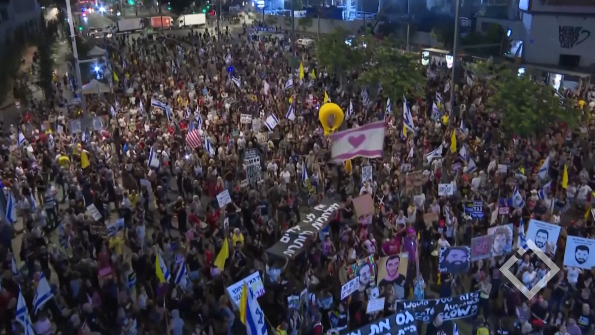 ისრაელში ანტისამთავრობო აქცია გაიმართა. მომიტინგეები მთავრობას „ჰამასის“ ტყვეობაში მყოფი მძევლების გათავისუფლებას და ღაზაში კონფლიქტის დასრულებისკენ მოუწოდებენ. დემონსტრანტებს ხელში ისრაელის დროშები...