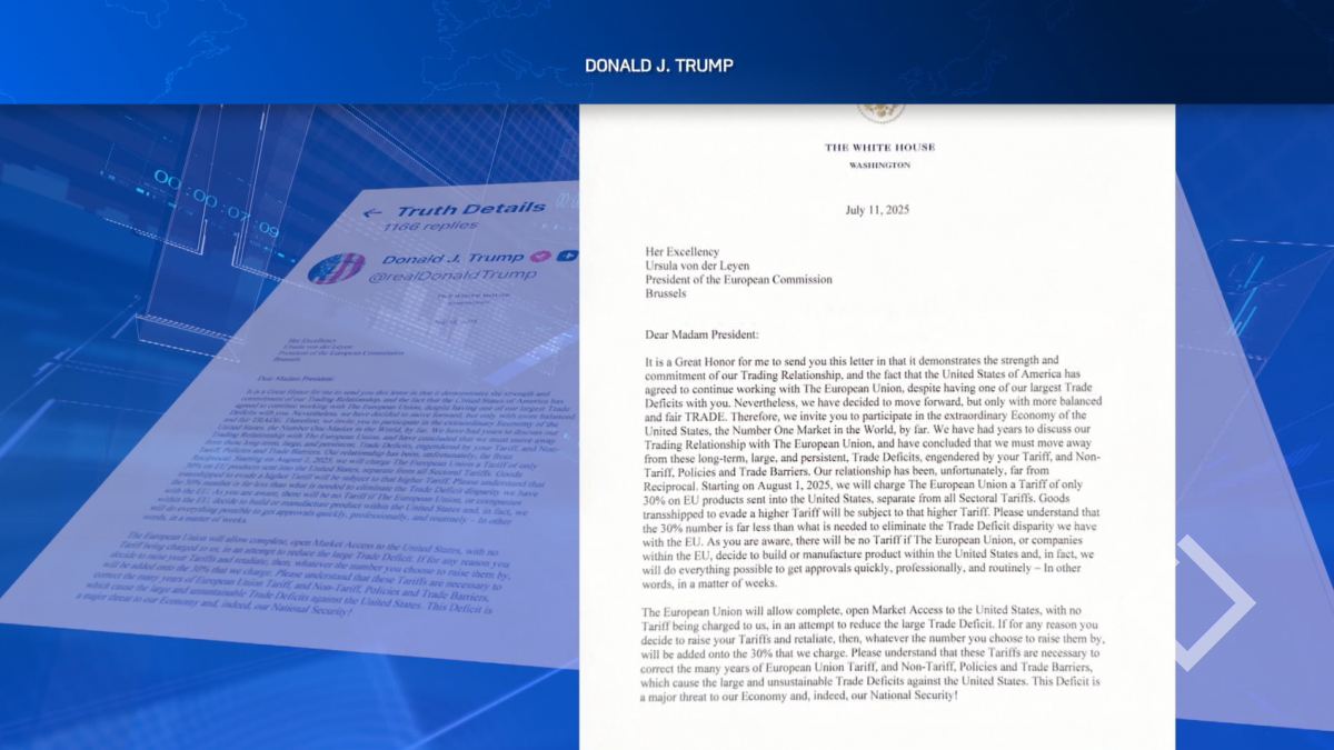 დონალდ ტრამპის განცხადებით 1 აგვისტოდან აშშ ევროკავშირს 30%-იან ტარიფს დაუწესებს. პრეზიდენტმა წერილი, რომელიც ევროკომისიის პრეზიდენტს, ურსულა ფონ დერ ლაიენს გაუგზავნა,...