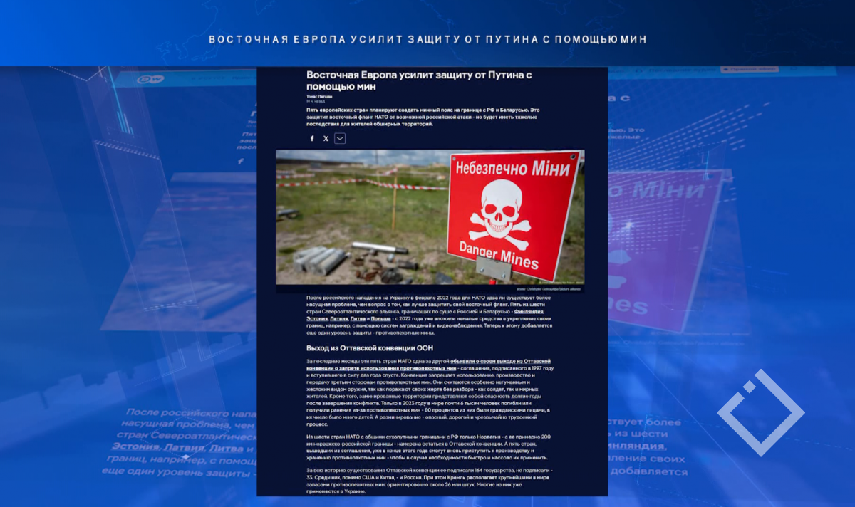 ევროპის ხუთი ქვეყანა რუსეთისგან საზღვრის დასაცავად ე.წ დანაღმული სარტყლის შექმნას აპირებს. ინფორმაციას ამის შესახებ „დოიჩე ველე“ ავრცელებს. გამოცემის ცნობით, ნატო-ს...
