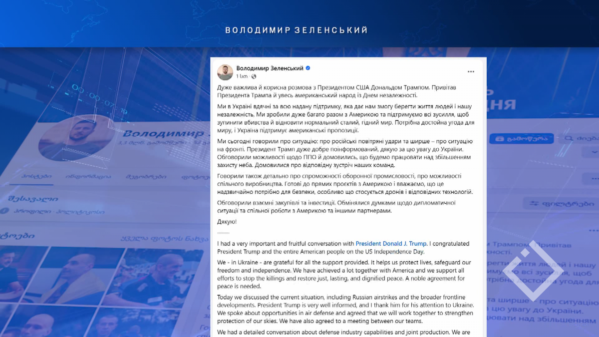 უკრაინის პრეზიდენტი ამერიკელ კოლეგასთან გამართულ სატელეფონო საუბარს გამოეხმაურა. ვოლოდიმირ ზელენსკიმ დონალდ ტრამპთან საუბრის შემდეგ, აღნიშნა, რომ მადლიერია გაწეული მხარდაჭერისთვის, რაც...