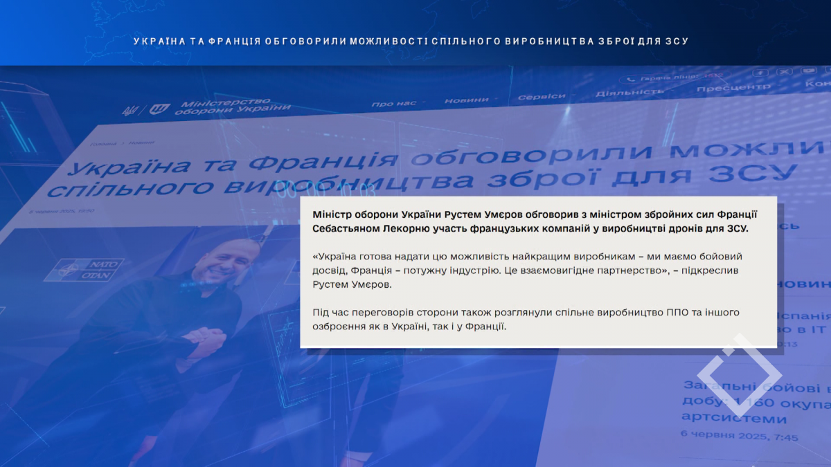 უკრაინისა და საფრანგეთის თავდაცვის მინისტრებმა თავდაცვის წარმოების სფეროში ორმხრივი თანამშრომლობის პერსპექტივები განიხილეს. უკრაინული მედიის ცნობით, რუსტემ უმეროვმა და სებასტიან ლეკორნუმ...