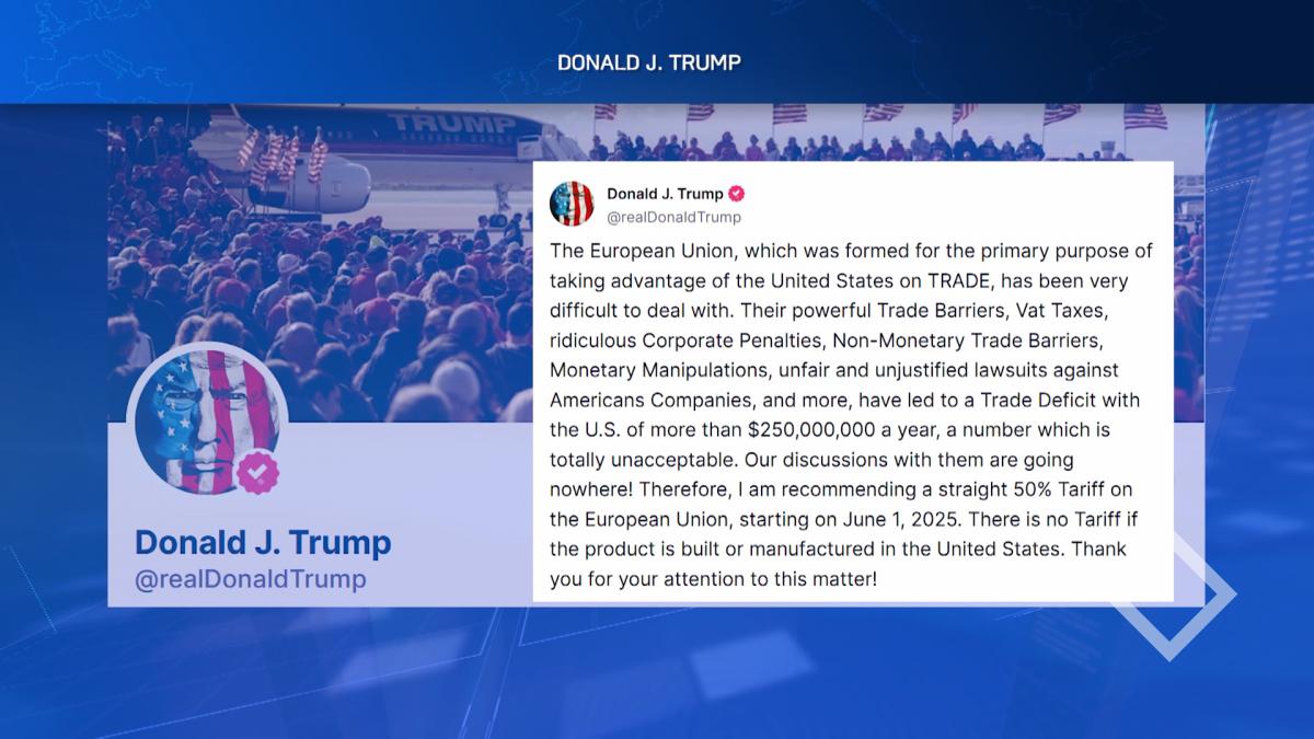 აშშ-ის პრეზიდენტი 1-ლი ივნისიდან ევროკავშირის წინააღმდეგ 50%-იანი ტარიფის დაწესების ინიციატივით გამოდის. სოციალურ ქსელში დონალდ ტრამპმა ევროკავშირის სავაჭრო ბარიერებზე ისაუბრა და...
