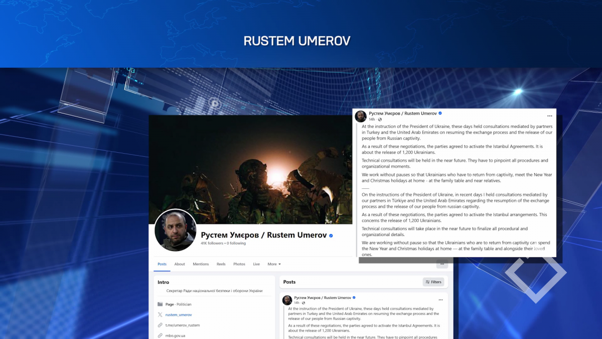 უკრაინის ეროვნული უსაფრთხოებისა და თავდაცვის საბჭოს მდივნის განცხადებით, თურქეთსა და არაბთა გაერთიანებულ საამიროებში უკრაინის პარტნიორების შუამავლობით კონსულტაციები გამართა, გაცვლის პროცესისა...