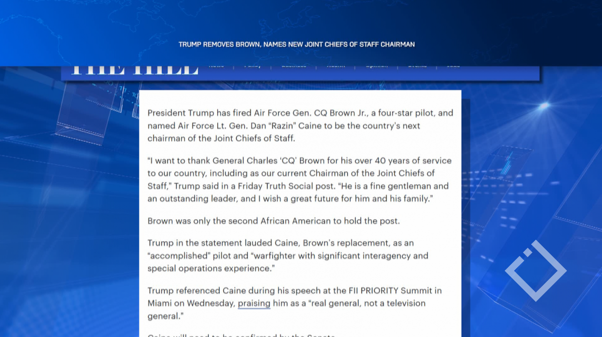 დონალდ ტრამპმა აშშ-ის გაერთიანებული შტაბების ხელმძღვანელი გაათავისუფლა. ინფორმაციას სააგენტო THE HILL ავრცელებს. ტრამპმა გენერალ ჩარლზ ბრაუნს 40 წელზე მეტი ხნის...