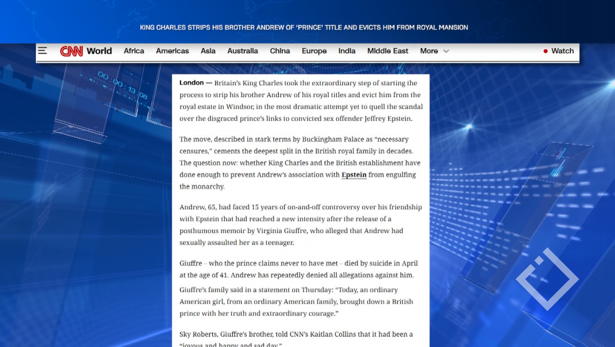 დიდი ბრიტანეთის მეფე ჩარლზ მესამემ უმცროს ძმას, იორკის ჰერცოგ პრინც ენდრიუს ყველა ტიტული ოფიციალურად ჩამოართვა. მას ასევე ჩამოერთმევა საპატიო წოდებებიც....