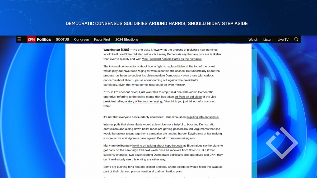 აშშ-ის მომავალ საპრეზიდენტო არჩევნებში, ჯო ბაიდენი თავის კანდიდატურას თუ მოხსნის, დემოკრატიული პარტიის წევრები მხარს, ვიცე-პრეზიდენტ კამალა ჰარისს დაუჭერენ. ინფორმაციას გამოცემა...