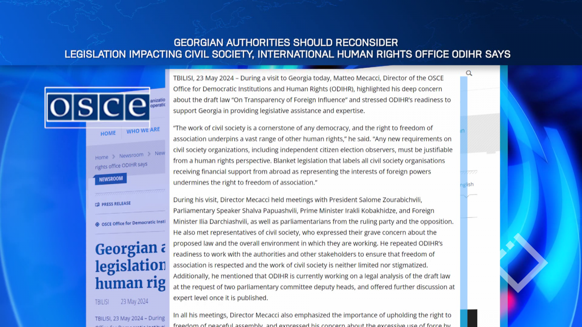 ეუთო/ოდირის დირექტორი ღრმა შეშფოთებას გამოთქვამს უცხოური გავლენის გამჭვირვალობის შესახებ კანონის მიმართ. მატეო მეკაჩიმ თბილისში ვიზიტის დროს აღნიშნა, რომ კანონი ძირს...
