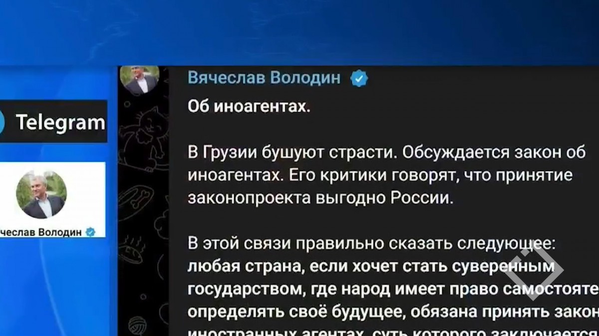 ''უცხოური აგენტების შესახებ კანონის მოწინააღმდეგეები „სხვა სახელმწიფოს ინტერესებიდან გამომდინარე მოქმედებენ“ - ამის შესახებ რუსეთის სახელმწიფო სათათბიროს თავმჯდომარემ განაცხადა. ვიაჩესლავ ვოლოდინის...