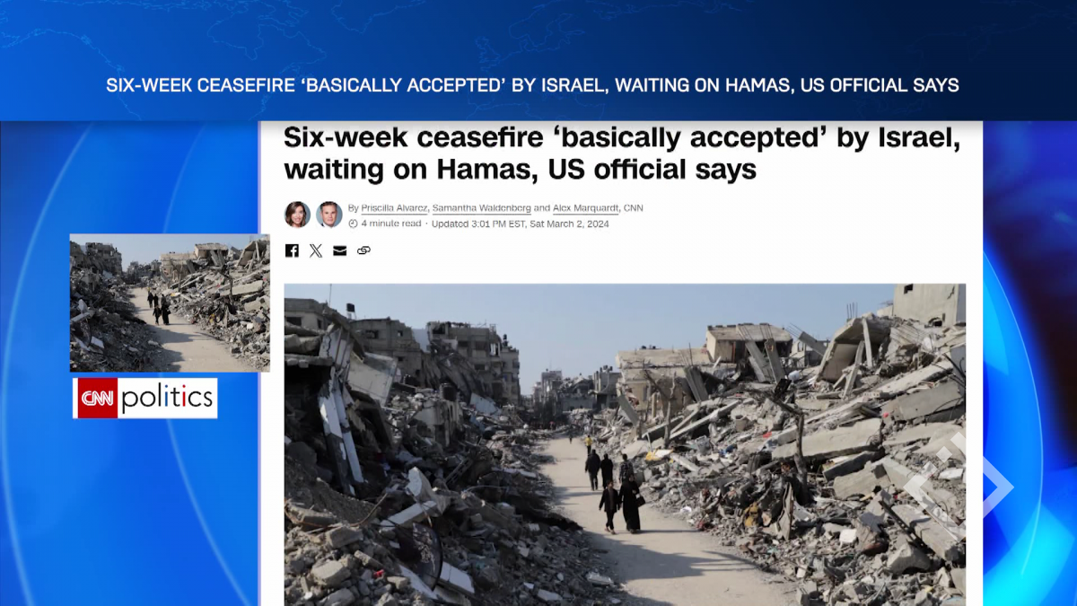 აშშ-ის პრეზიდენტის ადმინისტრაციის წარმომადგენლის განცხადებით, ისრაელი ფაქტობრივად დათანხმდა ღაზის სექტორში საომარი მოქმედებების 6 კვირით შეჩერებას და ახლა „ჰამასის“ პასუხს ელოდება....