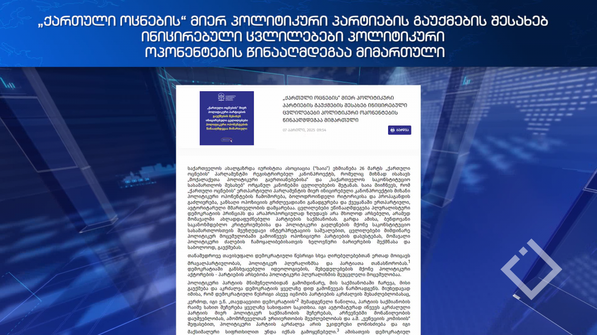 საია ეხმიანება პარლამენტში რეგისტრირებულ კანონპროექტს, რომელიც მიზნად ისახავს „მოქალაქეთა პოლიტიკური გაერთიანებებისა“ და „საქართველოს საკონსტიტუციო სასამართლოს შესახებ“ ორგანულ კანონებში ცვლილებების შეტანას....