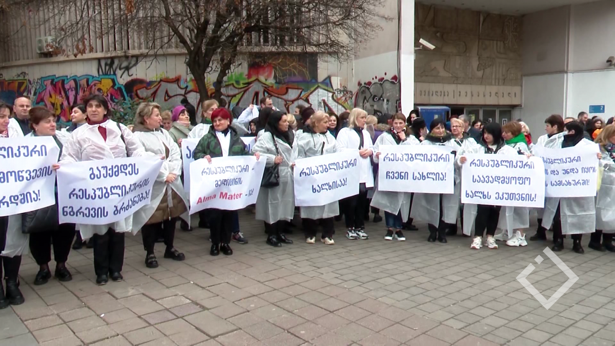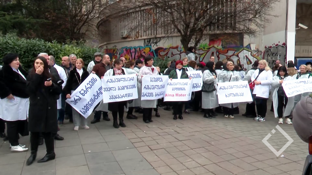 რესპუბლიკური საავადმყოფოს მედპერსონალის ნაწილი, რომელიც შენობის რეორგანიზაციის ბრძანების გაუქმებას ითხოვს პრემიერს, ირაკლი კობახიძეს ხვდება.