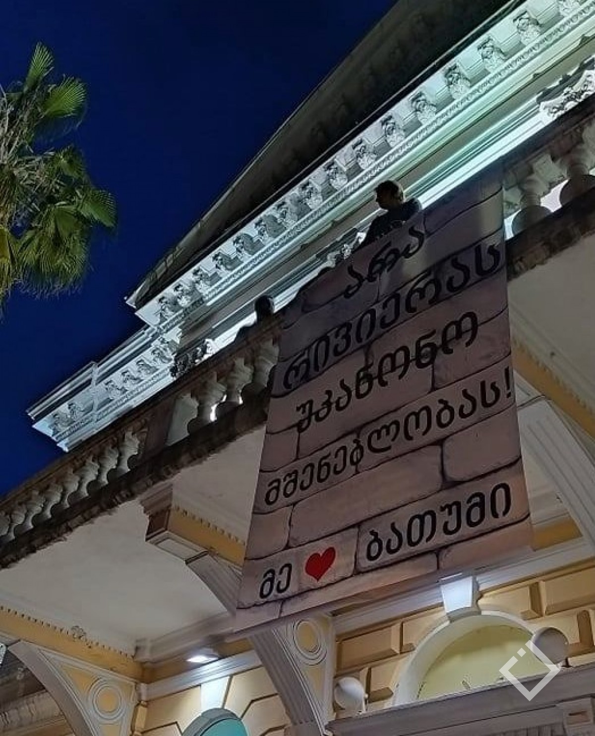 "არა რივიერას უკანონო მშენებლობას," - ამ შინაარსის ბანერი "მე მიყვარს ბათუმი"-ის ორგანიზაციის წევრებმა ბათუმის მერიის შენობიდან გადმოფინეს. ისინი ამ ფორმით მშენებლობას...