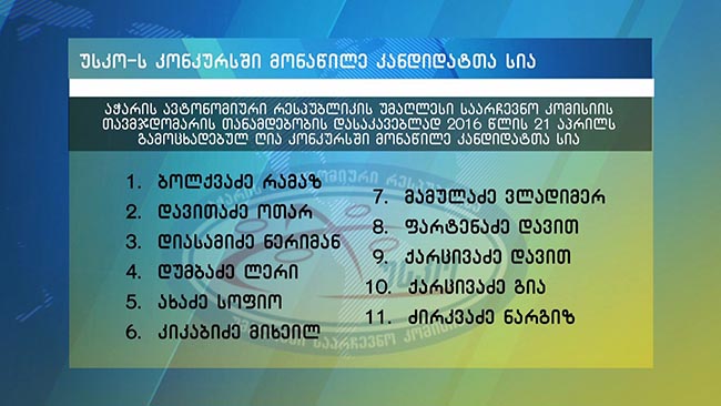 11 თავმდჯომარეობის და 23 წევრობის კანდიდატი - ასეთია უსკოს ვაკანტურ პოზიციებზე შესული განაცხადები. სია მთავრობის ვებ-გვერდზე გამოქვეყნდა.