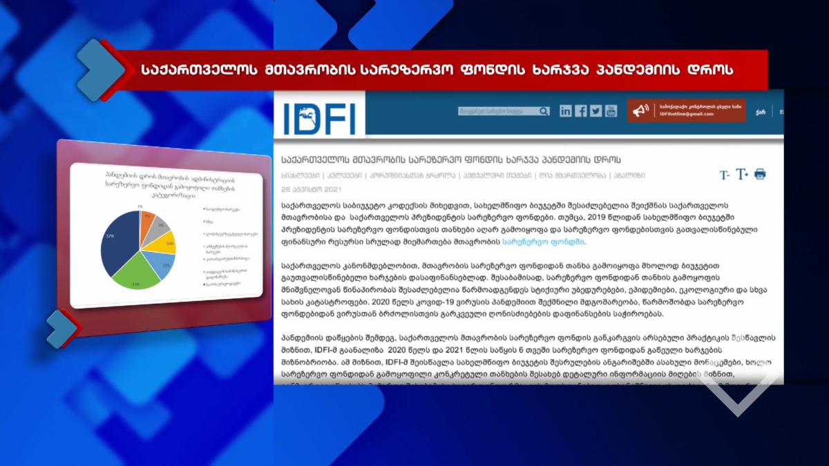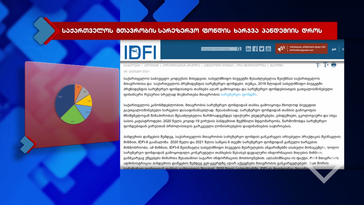 2020 წელს და 2021 წლის პირველ 6 თვეში სარეზერვო ფონდის მხოლოდ 13% მოხმარდა უშუალოდ კორონავირუსთან ბრძოლას - ნათქვამია "ინფორმაციის თავისუფლების...