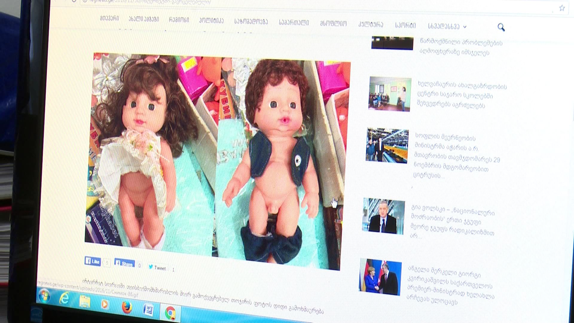 ბათუმში, სათამაშოების მაღაზიაში გენიტალიების მქონე თოჯინის რეალიზაციის ფაქტი დაფიქსირდა. ინფორმაცია ამის შესახებ სოციალურ ქსელებში გავრცელდა და არაერთგვაროვანი გამოხმაურებებიც მოჰყვა. ჩვენი...